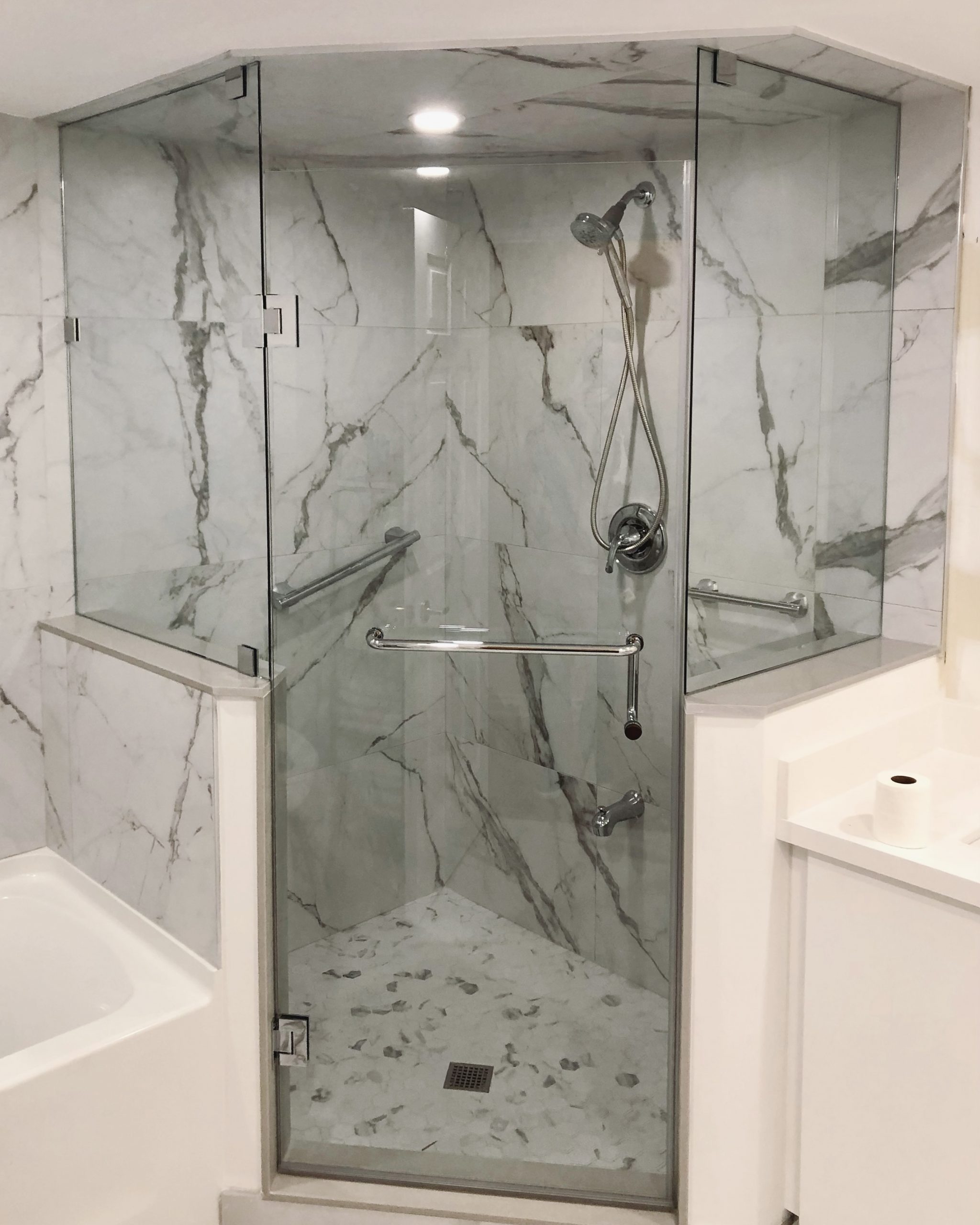Custom-made neo-angle glass enclosures make your bathroom smart and stylish. The professionals at Shower Lagoon will guide you through the entire installation process, from picking the proper glass texture to obtaining precise dimensions. (The texture of glass may change depending on the style you choose.) Depending on the overall style of your bathroom, you may consult with our professionals to choose the best glass texture.